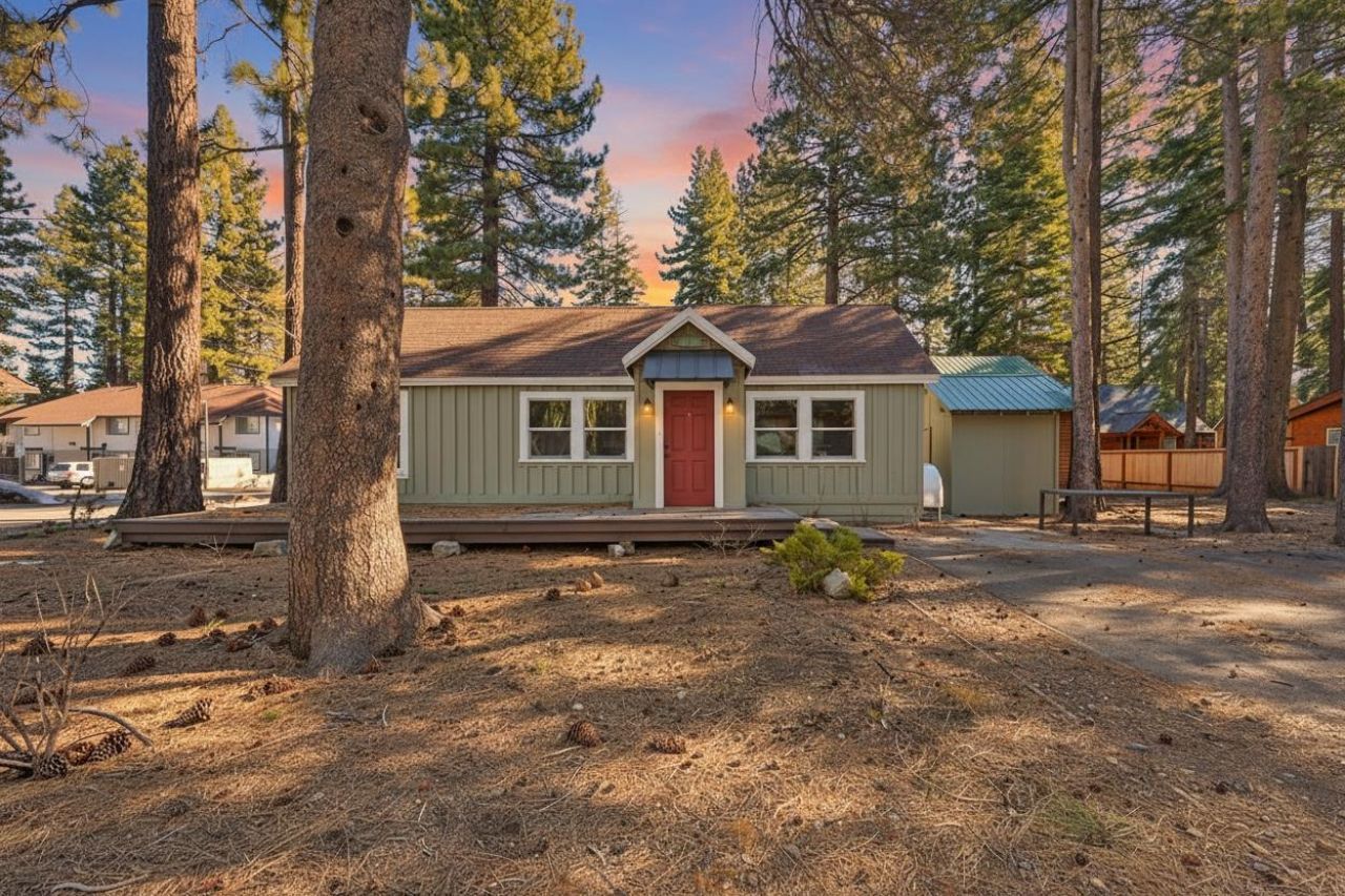 Welcome to mountain living in South Lake Tahoe, California. This charming 2-bedroom, 1-bath home sits on a desirable corner lot in a cozy, homey neighborhood, just minutes from local shopping and dining and within walking distance to the lake. Inside, the home features natural wood flooring throughout, bringing warmth and classic Tahoe character to the living spaces. The comfortable layout makes great use of the space and offers an inviting feel whether you're looking for a full-time residence, weekend getaway, or investment opportunity. The finished attic space upstairs provides additional storage and flexible space with the potential to be used as a third bedroom, office, or additional area. Outside, the property includes a storage shed and ample parking, offering added convenience for Tahoe living. With its prime location, charming interior, and extra usable space, this home is a wonderful opportunity to enjoy the Tahoe lifestyle year-round.