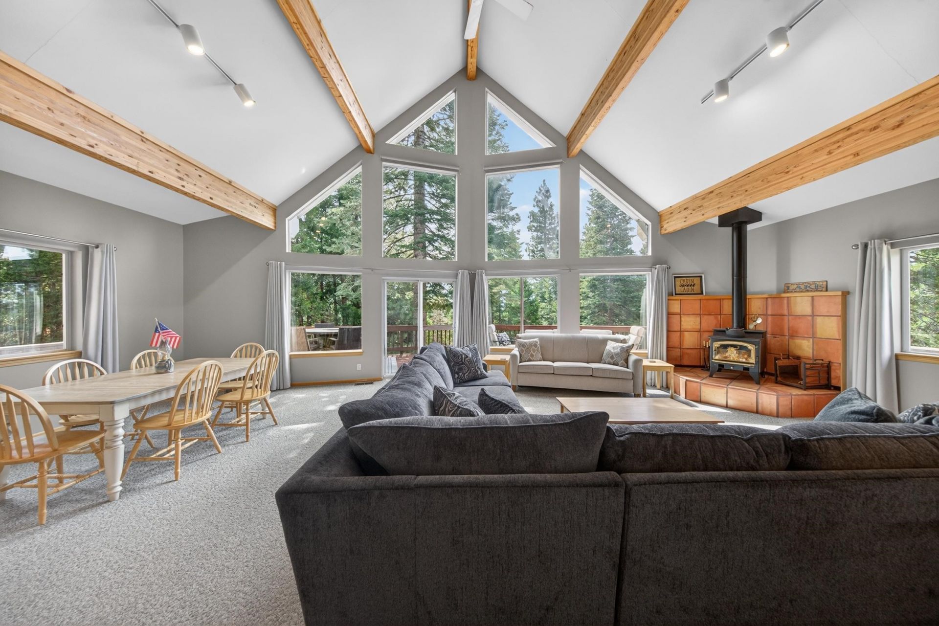 Beautifully maintained and perfectly situated in the highly desirable Lake Almanor West community, this charming 3-bedroom, 2-bath mountain home offers the ideal blend of comfort, privacy, and year round enjoyment. Located on a peaceful, quiet street and nestled among the pines, the property features serene forest views and an inviting sense of retreat. Spanning approximately 1,888 square feet, this residence welcomes you with a spacious great room highlighted by floor to ceiling windows, open beam vaulted ceilings, and abundant natural light. The open concept kitchen offers generous cabinetry and seamless flow to the living and dining areas?perfect for gatherings and entertaining. The main level includes two well sized bedrooms and a full guest bath providing comfortable accommodations for family and friends. The entire upper level is dedicated to a lovely master suite. This retreat boasts scenic views, a private bath, double closets and a cozy adjoining sitting nook. Comfort is ensured year round with central air conditioning, central propane heat, and a Lopi wood stove in the great room. Outdoor living shines with a substantial wrap around deck ideal for BBQs, relaxation, and enjoying the mountain air. An oversized two car garage provides ample storage for recreational gear, and a level parking area easily accommodates two boats. NEW ROOF in 2022! Offered mostly furnished, this turnkey home allows you to move right in and start enjoying the Lake Almanor lifestyle. Lake Almanor West amenities include a private boat launch, lakeside recreation area with beach access, a 9 hole golf course, tennis courts, and a seasonal restaurant. A perfect fulltime residence or vacation retreat?look no further. This is mountain living at its finest.
