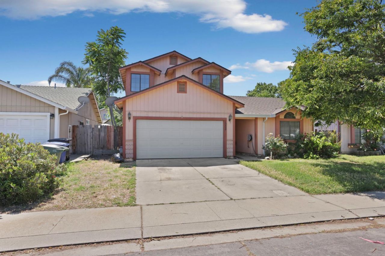 Welcome to 1204 Dezzani Lane in Modesto This 4 bedroom, 2 bathroom home offering 1,469 sq ft of living space on a 4,900 sq ft lot, ready for your vision and personal touch. Step inside to a light-filled layout featuring vaulted ceilings, a cozy brick fireplace, and an open-concept living and dining area perfect for everyday living or entertaining. The kitchen offers ample counter space, a breakfast bar, and a functional layout with great potential for updates. Upstairs you'll find generously sized bedrooms with flexibility for family, guests, or a home office. Outside, the backyard provides a covered patio and plenty of room to create your ideal outdoor space. Conveniently located near schools, parks, and shopping, this property is being sold AS-IS an excellent opportunity for investors or buyers looking to build equity and make it their own.