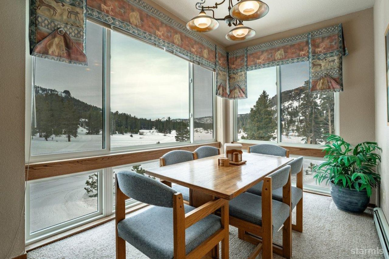 This one bedroom lock-out option condominium is private, affordable, and practical! Rare and spectacular views down the length of the Kirkwood Meadow. It could be said that this is the best view in Kirkwood. Located just steps from the ski lifts, you'll be enchanted with how easy it is to get to the slopes and the village. Then, set-back away from the main road with abundant windows for winter sun and dramatic views, you'll be at ease in the quiet of your cozy home-away-from-home. The kitchen with its bar counter and a dining table surrounded by windows and views makes for fun and elegant entertaining. And a comfy window seat next to the wood burning fireplace makes a delightful reading area or extra sleeping area.And it is only a short walk to the near-by Kirkwood Recreation Center and Owner's Club (KCA) with outdoor pool and Jacuzzis, and indoor sauna, steam, fitness center, massage services, bar and lounge. (It is customary for the buyer to pay the 3% real estate transfer fee to the KCA.)One reserved underground parking space. Common area ski locker room and two common area laundry rooms. Sold fully furnished.