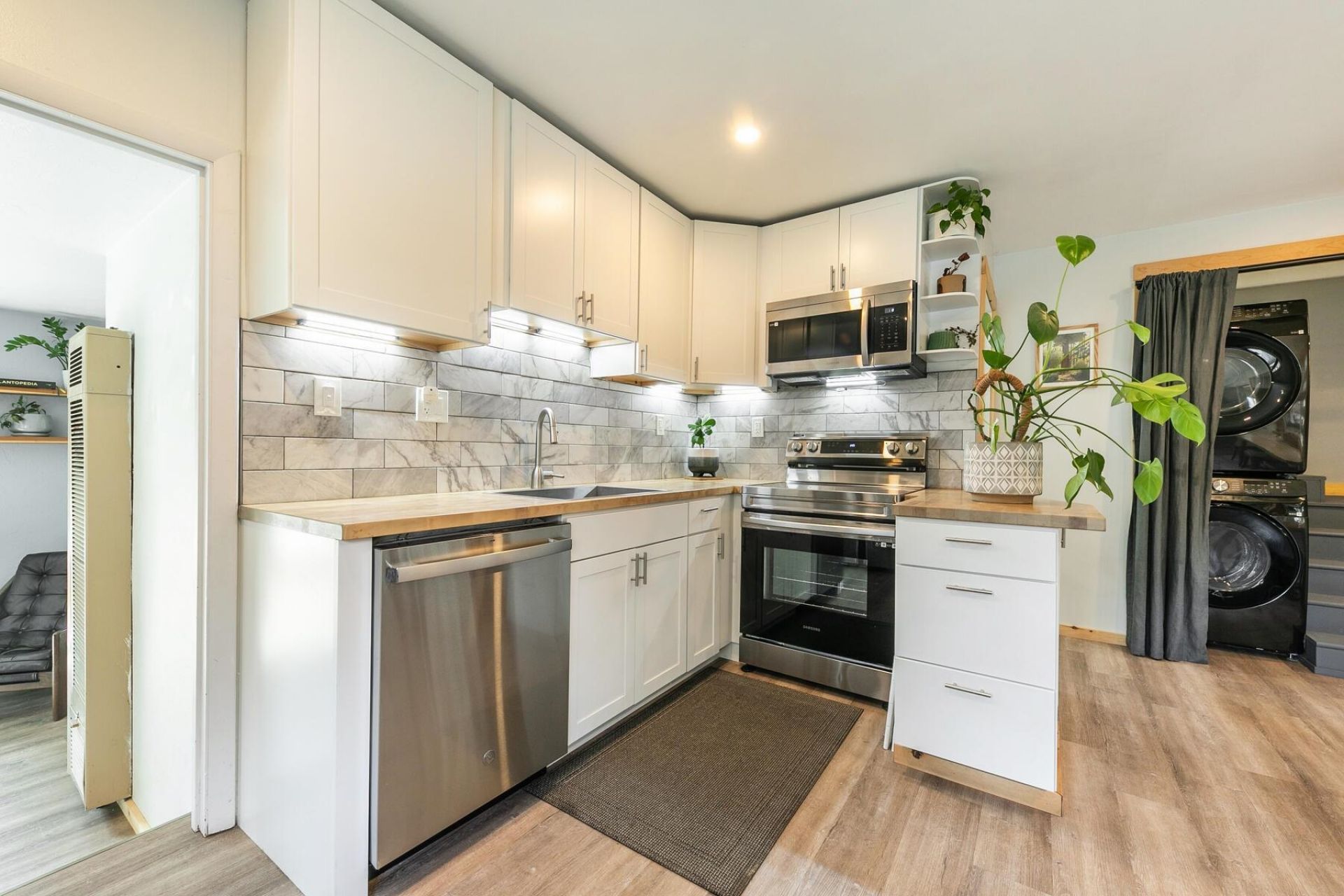 Extensively remodeled and set back from the road for added privacy, this 2-bedroom, 2-bath home offers lake views and a comfortable Donner Lake setting. The remodel includes updates to the kitchen, appliances, bathrooms, windows, flooring, and doors, creating a clean and move-in ready space. The living area is filled with natural light and anchored by a pellet-stove fireplace, while the kitchen offers a functional layout for everyday living. The property includes plans for a 536 sq. ft. two-car garage with a 1-bedroom ADU above, complete with a kitchen, full bath, and living area. This addition adds meaningful flexibility and long-term value, creating a strong opportunity for enhanced lifestyle use and investment potential. A separate storage shed with electricity and lighting, along with a covered extension for tools and gear, adds additional utility. Enjoy a convenient location just a short distance to Donner Lake Kitchen, Sticks Market, and public docks, with easy access to Sugar Bowl Ski Resort and year-round outdoor recreation including hiking, biking, and backcountry skiing. Optional membership to the Donner Lake West End Owners Beach provides access to a private beach, further enhancing the lake lifestyle. Offered partially furnished with no HOA restrictions, this is a versatile Donner Lake opportunity.