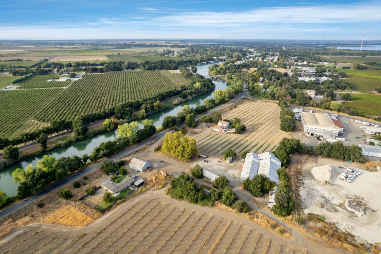M2 Zoned with River Frontage! 11 plus acres on Georgiana Slough with frontage on two roads. 10+/- acre newly planted Almond orchard. Large home and former pear sorting and packing warehouse. Rare M2 Heavy Industrial Zoning! The large home and a former pear-packing warehouse means there are existing buildings that could be renovated. Repurposing the warehouse would likely be easier than building from scratch, potentially saving time and costs.