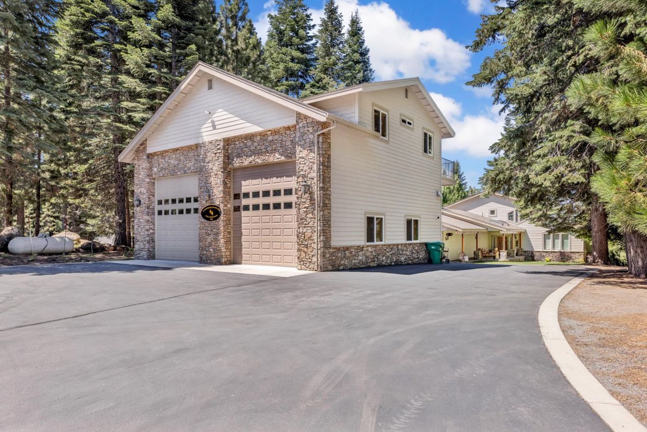 Introducing a truly remarkable Lakefront home in Lake Almanor West, boasting a spacious .62-acre lot and offering an exquisite living experience. With over 4400 square feet of custom lakefront living, this property is sure to impress. As you approach, you'll be greeted by a beautiful stone-covered entry complete with skylights, setting the stage for the elegance that awaits inside. The main home features four bedrooms and 2.5 baths, providing ample space for comfortable living. For added privacy, there are two additional bedrooms, one with it's own deck and full bath above the detached garage. Step into the inviting Living Room, where cedar open beam ceilings and a propane fireplace with a stone hearth create a cozy atmosphere. The remarkable granite kitchen is a chef's dream, offering plenty of cabinetry and opening to the family room, perfect for entertaining and creating memories with loved ones. The spectacular master suite is a true retreat, featuring a balcony to enjoy the lovely lake views. The master bath is equally impressive, with a huge walk-in dual wall mount shower, marble tile, an oversized jetted tub, and double sinks. Downstairs, you'll find three bedrooms and a full bath, as well as a large recreation game room with access to a beautiful spacious stone patio. The living room and family room both provide access to the substantial synthetic deck, ideal for outdoor gatherings. Speaking of outdoor entertainment, the convenient outdoor kitchen and marvelous deck space make hosting a breeze. The property's lush lawn and easy lit paver path lead to the lake and two stone patios at the water's edge. The level paved heated driveway ensures easy access for all, and there is ample parking and storage for all the toys with the attached heated garage measuring 876 square feet and the detached heated motorhome garage boasting 1705 square feet with two 14x14 foot doors. To ensure year-round comfort, both the main home and the additional quarters above the garage are equipped with air conditioning. The main residence also features a 16KW Auto Generator. This Lakefront gem truly offers the best of lakeside living, combining luxury, functionality, and breathtaking views. Most all furnishings and upgraded dock are included in the sale making it easy to walk right in and enjoy lakefront living at it's best!