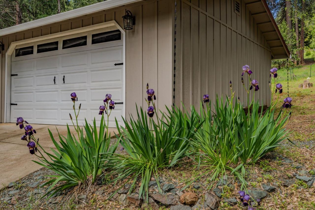 Welcome to this beautifully remodeled A-frame cabin tucked among the trees, offering the perfect blend of charm, comfort, and privacy. Set on 1.31 private acres with a seasonal stream, this turnkey retreat features 2 bedrooms, 2 bathrooms, approximately 1,274 square feet of living space, plus an extra finished space in the detached garage. Inside, you'll find tasteful updates throughout, including granite countertops, new kitchen appliances, and soft-close drawers and cabinetry. The inviting living room showcases soaring cathedral ceilings, a stunning stone hearth fireplace, and dramatic windows that bring in natural light and peaceful wooded views. The loft area also enjoys the home's striking wall of windows, adding to the unique character of this classic cabin. The main-level bathroom features quartz finishes and a deep soaking tub, creating a relaxing spa-like feel. A wraparound deck extends the living space outdoors, where you can enjoy the serene park-like setting, towering redwoods, the sounds of the seasonal stream, and star-filled nights. Additional features include a spacious pantry with electricity tucked beneath the stairs, perfect for extra storage and keeping countertops clear. Located on a cul-de-sac for added privacy, the detached garage includes a versatile flex space ideal for a home office, gym, art studio, or possible ADU conversion. With its peaceful setting, thoughtful updates, and close proximity to Tiger Creek and endless outdoor recreation, 45 minutes to Kirkwood Ski Resort. This is a property you will not want to miss.