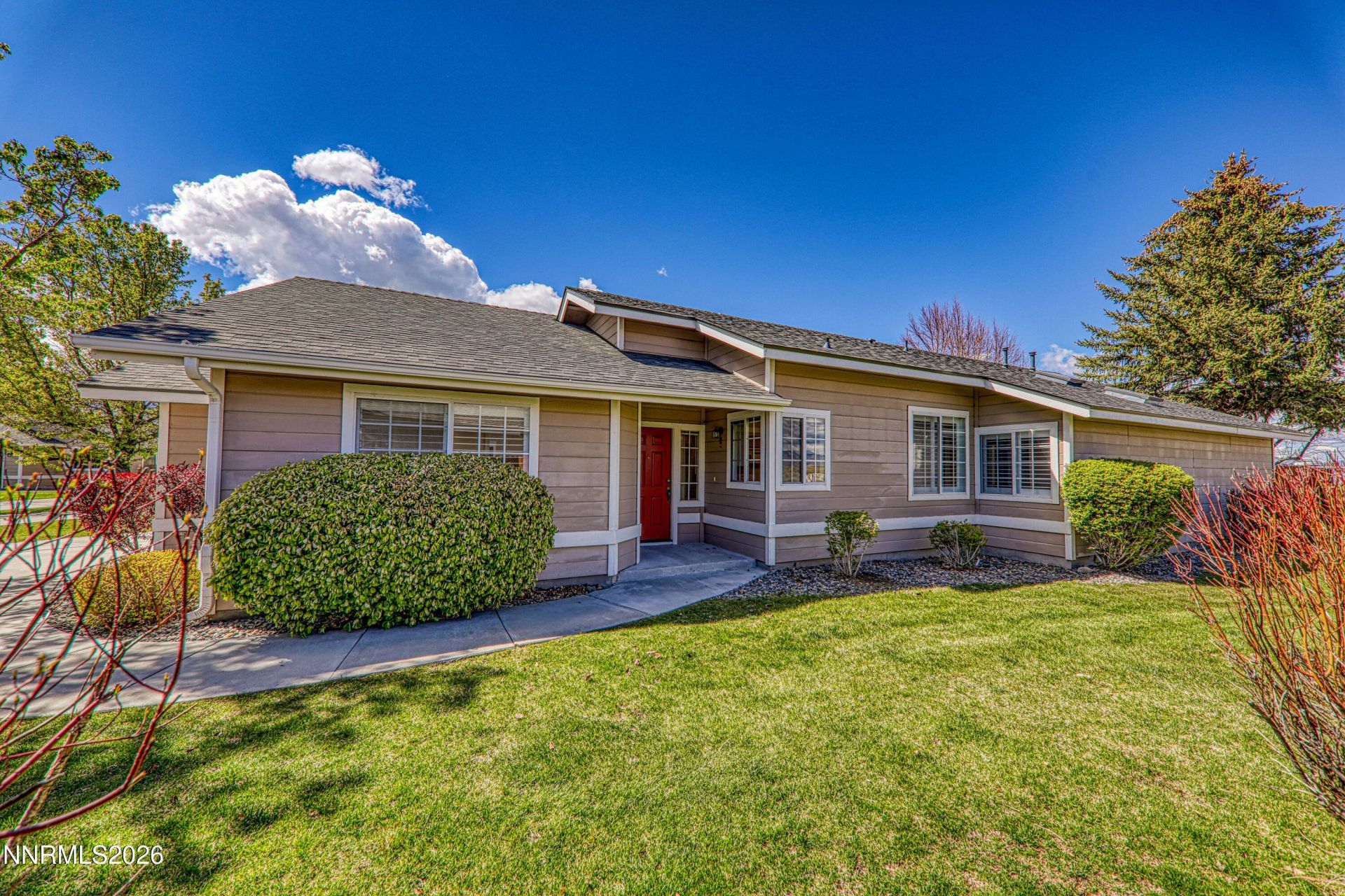 This single-level home boasts three bedrooms, two bathrooms, and a two-car garage, spanning 1776 square feet. Built in 1995, it features central heating and air conditioning. Nestled in the Winhaven development in Minden, Nevada, this home is adjacent to open land, offering a serene, spacious, outdoor living environment. Single level living conveniently located near shopping, restaurants, and retail, making it an ideal place to live. The city is known for its charming small-town atmosphere, stunning natural surroundings, family-friendly vibe, and practical advantages such as favorable taxes. Just a short drive to Carson City, Lake Tahoe and Reno.
