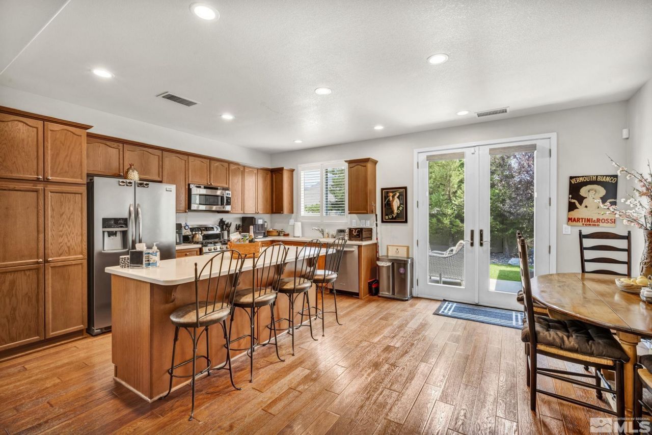 This elegantly FULLY FURNISHED home welcomes you with rich wood finishes, an open room concept, gourmet kitchen, separate dining area, reclining couches, and TV's throughout the home. Includes a separate office and the primary bedroom is located on the main floor for easy access. You'll enjoy relaxing by the fireplace or firing up the BBQ and entertaining guests on the huge patio. Easy access to shopping and South Reno's main arterial roads makes access to town a breeze. Must see to truly appreciate!