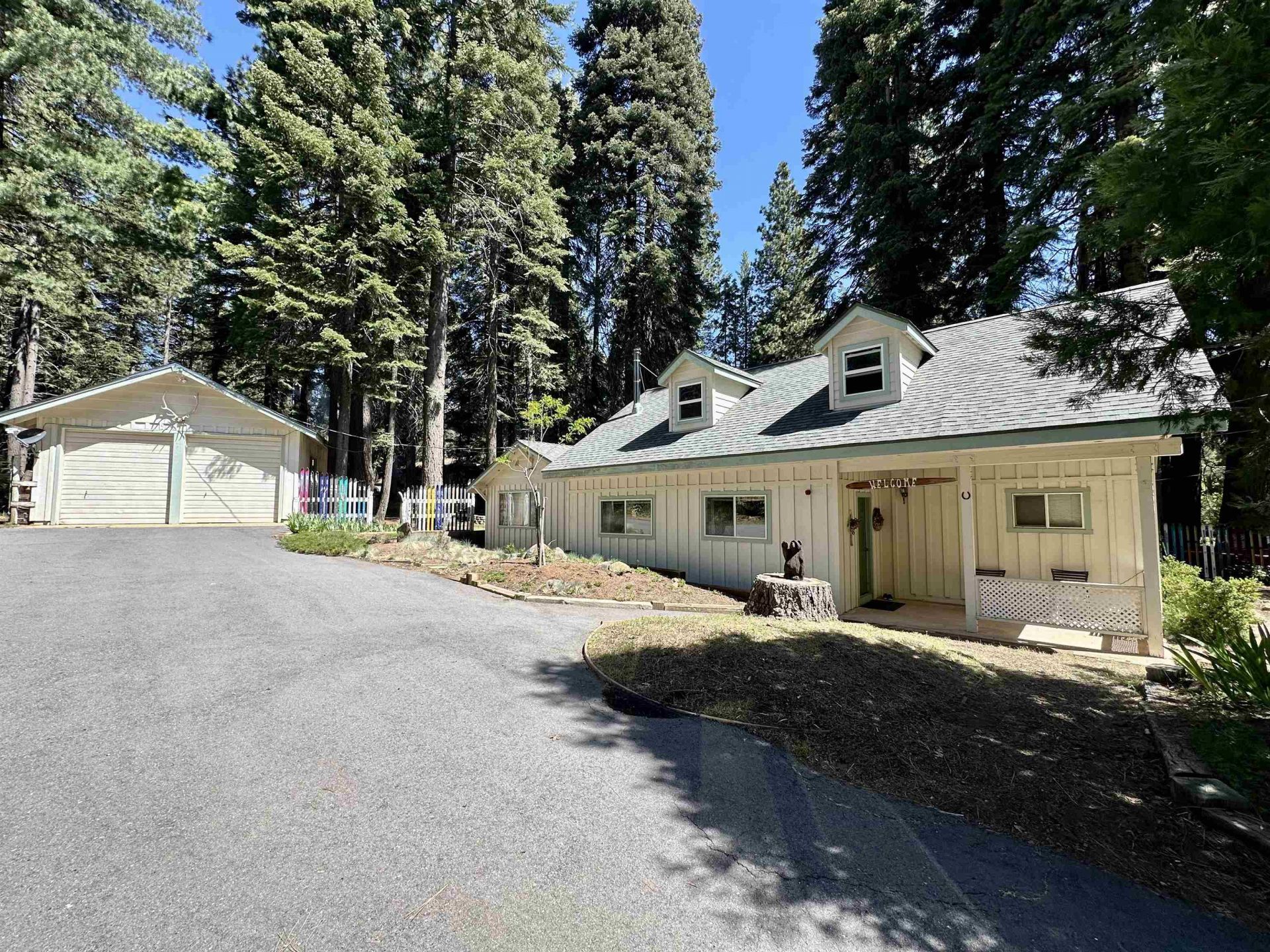 This charming mountain retreat is nestled in the heart of Peninsula Village and offers a peek-a-boo view of Lake Almanor just across the street. Convenient access to nearby amenities?including a market, coffee shop, restaurants, marina, and championship Bailey Creek Golf Course, all just moments away. This comfortable 2 bedroom, 2 bathroom home is set on a 0.69-acre lot surrounded by mature trees. There is potential to enlarge the living space with the partially finished upper level - a bonus space that presents a great opportunity to add a third bedroom or family/rec room. The updated kitchen opens to a large dining area & gathering place. Stay cozy year-round with both propane and wood-burning stoves. The expansive garage includes tall bay doors to accommodate boats, RVs, and vehicles, and also features a sizable attached workshop or storage room. A newer asphalt driveway adds convenience and curb appeal. The large lot offers ample room for future expansion or outdoor enhancements, making it an ideal setting for a true mountain getaway. Most furnishings are included, so this home is ready for immediate summer fun!