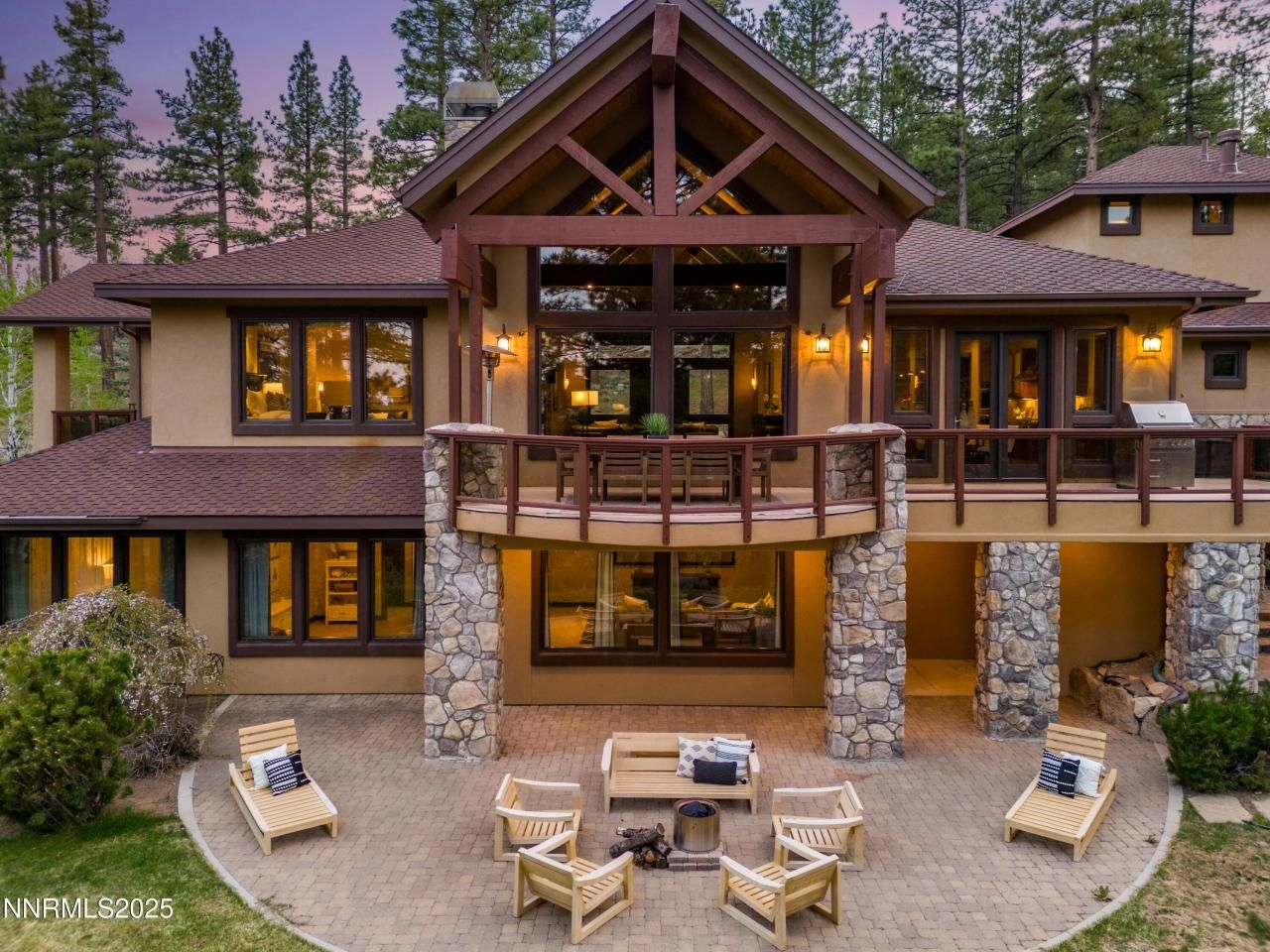 Tucked along the serene Brown's Creek and backing to scenic hiking trails, this elevated mountain contemporary residence pairs natural tranquility with bold architectural presence. Towering cathedral ceilings with exposed beams, knotty alder wood solid core doors, baseboards and trim, expansive windows, and a wrap around deck deliver indoor-outdoor living, ideal for entertaining or quiet evenings in the pines.Numerous recent enhancements blend the home's rich design. The entire interior has been freshly repainted and outfitted with upgraded lighting throughout, including new chandeliers and replaced recessed fixtures. New Leviton switches, a premium water softener system, and upgraded appliances-Miele coffee maker, new refrigerator, dishwasher, and washer/dryer-add function and refinement. Additional updates include fresh landscaping, improved irrigation, updated exterior and driveway lighting.The kitchen features Scavolini custom kitchen cabinets, a walk-in pantry, Thermador range, double ovens, warming drawer, and expansive island with bar seating. Retreat to one of two private primary suites-each with fireplaces, luxe bathrooms, walk-in closets, and private decks. Downstairs, the walk-out entertainment level is anchored by a home theater and hidden wine cellar, with room to gather indoors or step outside to the terraced grounds.Heated S-curve driveway, oversized three-car garage with epoxy floors, dual EV chargers, and meticulous detail. A singular offering that captures the essence of forest luxury.