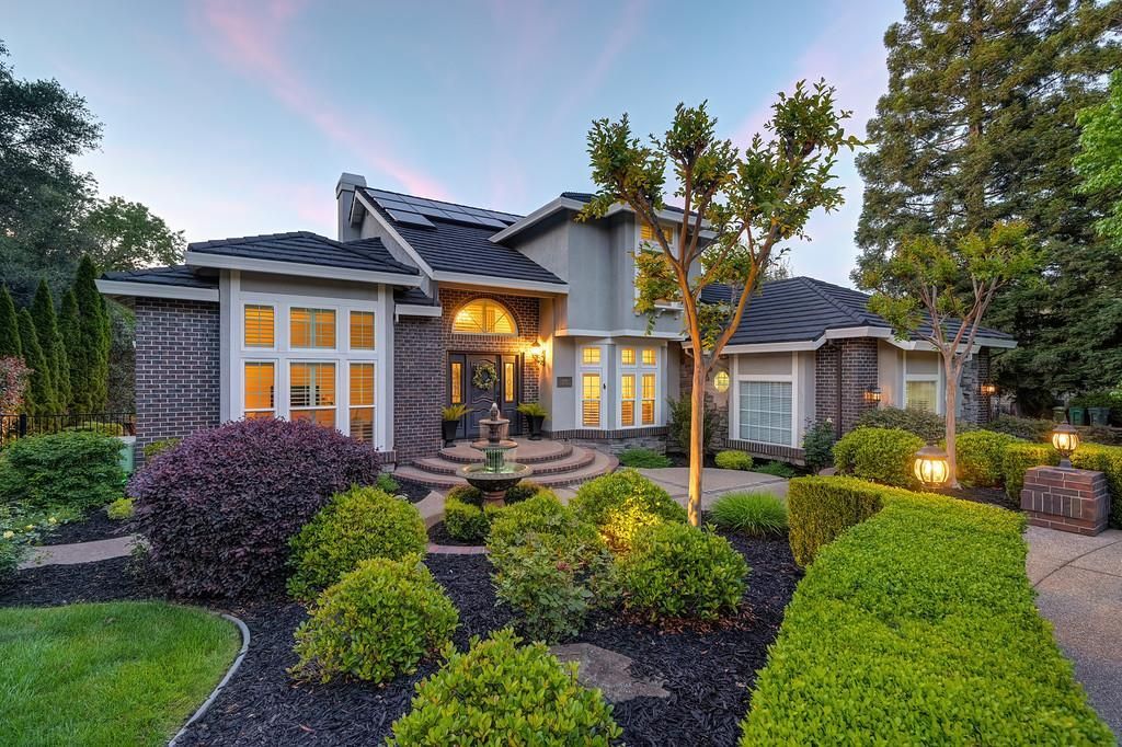 Tucked into the sought-after Sterlingshire neighborhood of El Dorado Hills, this beautifully maintained traditional custom home offers a rare blend of comfort, space, and natural surroundings. Set on a generous .56-acre lot backing to a serene greenbelt, the property enjoys a peaceful backdrop with a walking trail and a charming creek featuring subtle hints of Gold Rush-era history just beyond the backyard. Inside, the main level features formal living and dining rooms, along with an open kitchen-great room where a box-beam ceiling and fireplace create an inviting gathering space. The primary suite is also on the main level, complete with its own fireplace and direct access to the back deck. Just off the primary suite, an attached room offers flexibility for a home office, den, or nursery. Upstairs, a spacious flex room and expansive storage area provide options for a second family room, media space, or game room. Three additional bedroomsone an ensuitealong with two full baths complete the upper level. For outdoor relaxation and enjoyment, a generous deck off the kitchen and family room overlooks a solar-heated PebbleTec pool and a spacious lawn, all set against the natural greenbelt beyond. Lush, mature landscaping enhances both privacy and the inviting settingideal for quiet moments or entertaining family and friends. Desirable upgrades include an owned solar system and a newer stone-coated steel roof, offering efficiency and long-term durability. Located in the top-rated Rescue school district and within walking distance of a beautiful 4-acre neighborhood park, this home provides a setting that feels both connected and privately secluded.