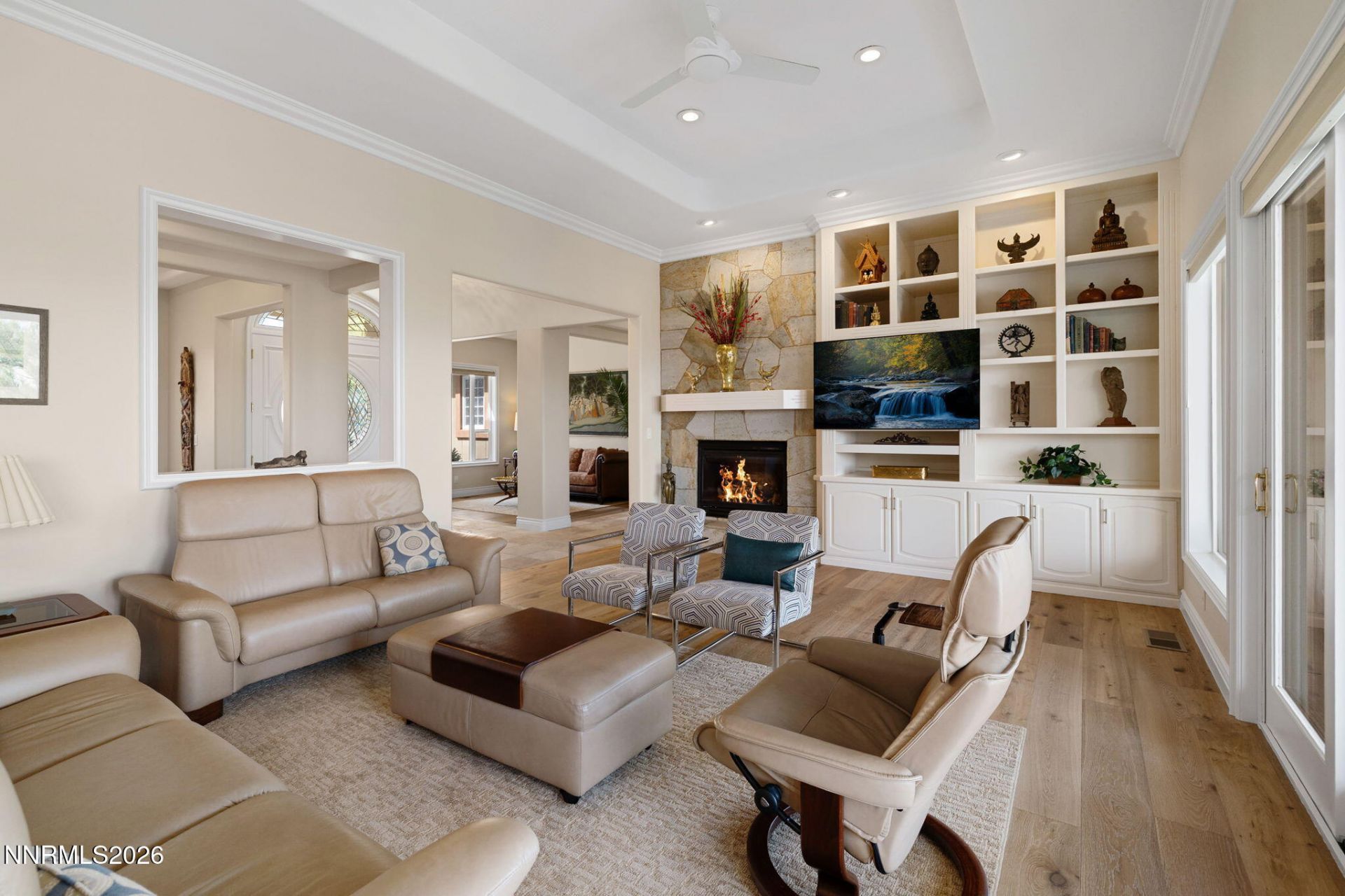 This is an absolute must-see in person-the level of care is unmatched, with meticulous upkeep, advanced filtration systems, and thoughtful allergy-conscious features that make this one of the cleanest, most pristine homes you'll ever step into. Nestled above Reno in an established, quiet, and secure neighborhood, this property offers sweeping panoramic views of the surrounding mountains and sparkling city lights. The community is highly walkable and bike-friendly, featuring sidewalks throughout and access to the scenic Steamboat Ditch Trail-a wide, well-maintained gravel path stretching approximately six miles, ideal for running, walking, and enjoying the outdoors. Conveniently located just off the Manzanita exit of the McCarran Loop, the home offers easy access to shopping, dining, major hospitals, and the Reno-Tahoe International Airport. The thoughtfully designed single-story residence emphasizes comfort, accessibility, and privacy. Interior features include lever-style door handles, ADA-compliant faucets, handheld showers and toilets, and a blend of tile and wood flooring for both style and durability. The split-bedroom floor plan provides enhanced privacy, with the primary suite set apart from guest bedrooms-perfect for both everyday living and hosting visitors.
