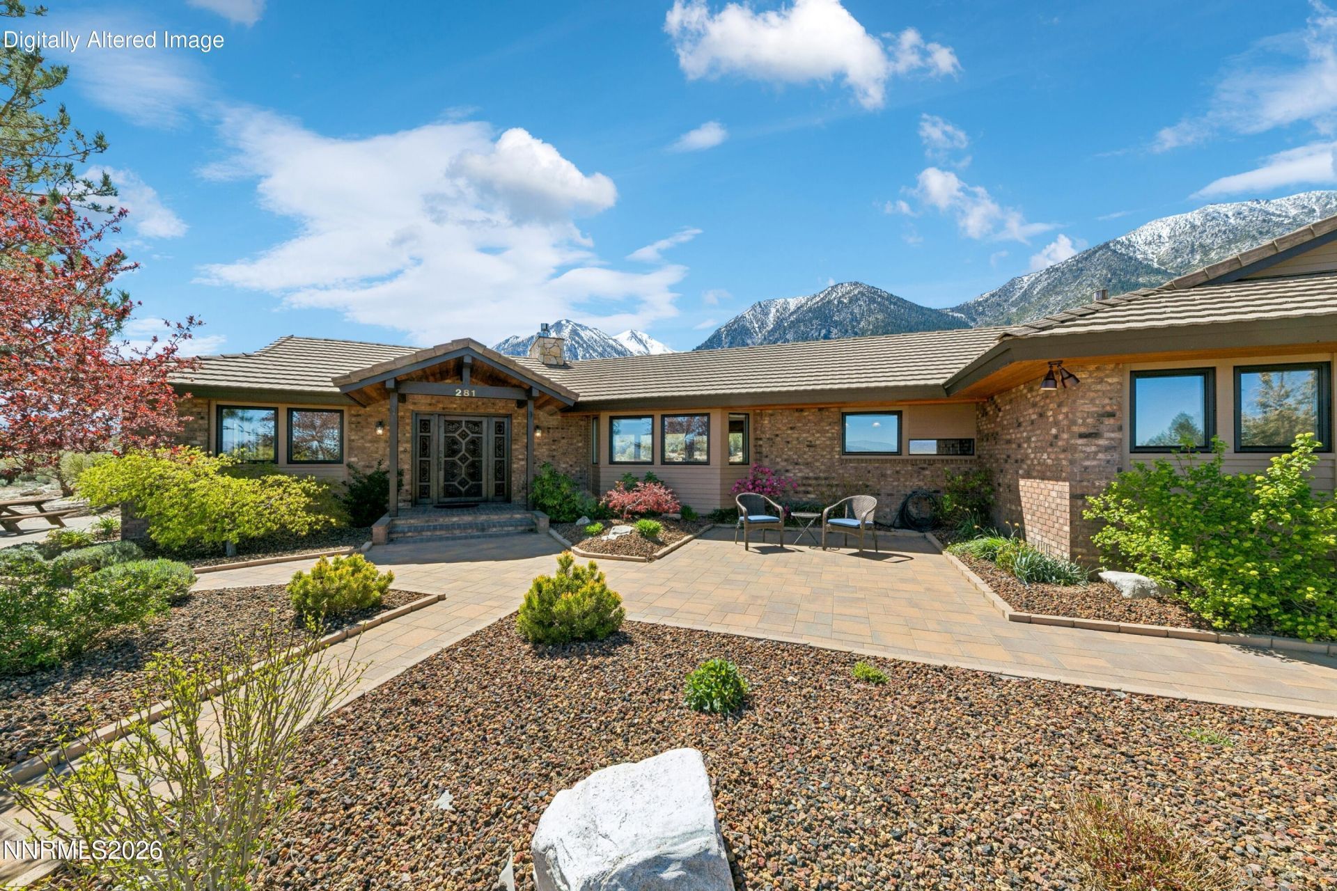 Fantastic 360 views from every window of this immaculately maintained Carson Valley property. Imagine the enormous Carson Valley sunrises, moonrises, and city lights of Minden/Gardnerville coupled with the backdrop of the sun setting behind the Carson Range. This property has it all, with views from every window. There is extensive outdoor landscaping, including flowers like lilies, iris, poppy, penstemon, roses, and fragrant lavender bushes, many raised and protected planter gardens, and several patios for taking in the breathtaking landscape. 281 Shadow Mountain is the ideal location for outdoor enthusiasts with unparalleled access to outdoor adventure. Skiing at Heavenly Mountain Resort is just 15 minutes away, Kirkwood Mountain Resort is only 45 minutes, while access to hiking, biking and equestrian trails via Fay-Luther trailhead just 3 miles South to the California state line. Just a short 10 minute drive North is historical Genoa; Nevada's first settlement. Beyond the location, views and exterior features, this home presents an exceptional blend of elevated comfort, with effortless entertaining spaces. There are three exterior patios, a large living room with fireplace, and a sitting nook. The spacious kitchen features engineered hickory wood floors, granite countertops, a breakfast bar, a gas range, wine refrigerator and a warming drawer for your convenience. You'll find plenty of storage in the island and surrounding cabinetry and be surprised with a kitchen pantry as well. Although only 2 bedrooms, this property has 2,740 square feet of living space and plenty of opportunity to create another bedroom if so desired.