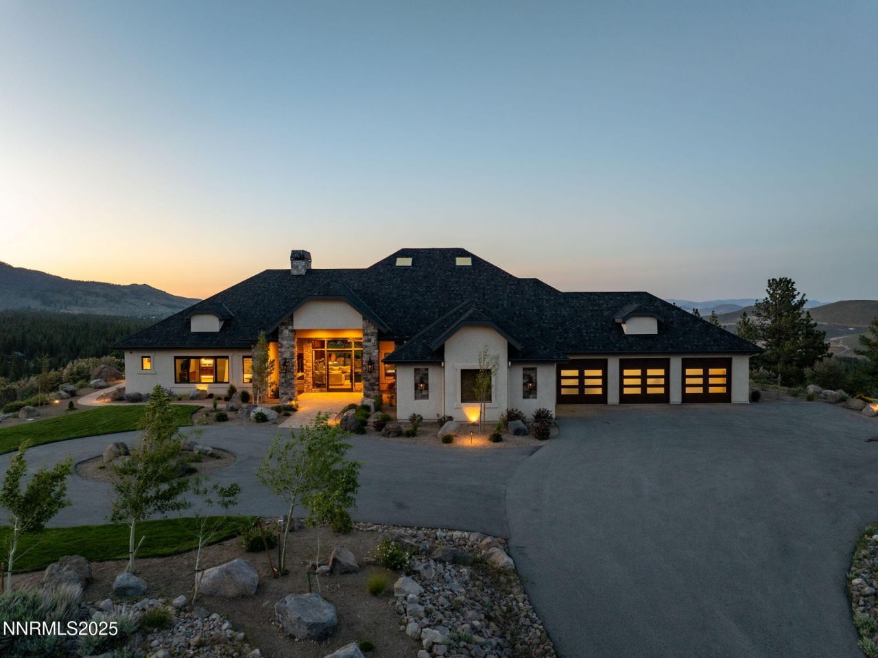 This is what it looks like at the top. Own the CROWN of Reno at 29 Bennington Court-a powerful property, built for bold living on one of the region's largest mountain top lots featuring 360-degree views of Mt. Rose, the city, and the forest. This custom, 4,831 sq ft single-level estate combines privacy, exclusivity, and luxury with three spacious suites, heated quartzite counters on the Kitchen Island, High end Thermador appliances, and Waterstone fixtures. Outside, the terrace features a massive yard, spa, gas firepit, and wood-burning hearth. Rising from St. James's Village, 29 Bennington Court commands the most powerful vantage in Reno. Spanning 6.33 acres across two contiguous parcels, this estate offers uninterrupted 360-degree views of Mt. Rose, downtown Reno, and the Sierra forest canopy. This single-level estate defines the top, geographically, architecturally, and experientially. This is not simply a home with views. It is the highest-positioned property in one of the region's most exclusive gated community-a singular alignment of land, layout, and presence. No other estate combines this scale, privacy, and presence. It does not compete. It leads. The structure is grounded in proportion and permanence. Wide hallways, soaring soffit ceilings, and generous transitions create a deliberate rhythm throughout the home. Material selections emphasize integrity over ornamentation: hardwood in primary living areas, plush carpet in private quarters, and marble thresholds where spaces shift. Skylights are positioned to trace the sun's arc, filling the interiors with natural light throughout the day. Each of the three en-suite bedrooms serves as a fully self-contained retreat-private, quiet, and complete. The primary suite features a steam shower, a deep soaking tub, radiant in-floor heating, and a meticulously outfitted dressing room with mirrored cabinetry, tailored lighting, and integrated storage. A discreet pass-through leads to the oversized laundry room, outfitted with dual washers and dryers, concealed hampers, and extensive cabinetry-designed for lasting function. Designed to balance performance and intention, the kitchen centers the home as a working space and a gathering area. A complete Thermador suite includes a six-burner range with griddle, dual convection ovens, commercial-grade ventilation, and integrated refrigeration. Heated quartzite countertops provide tactile comfort and thermal consistency. Cabinetry is full-depth and soft-close, with Waterstone fixtures chosen for their weight, reliability, and enduring finish. The walk-in pantry includes open shelving, a pebble ice maker, and grocery access to a three-car garage. Exterior living areas are designed for use and longevity. The terrace unfolds to a large patio with outdoor electric heating and a wood burning hearth, a recessed Bullfrog spa, a gas fire pit, and a massive yard. Hardscaping materials, including poured concrete and boulders sourced directly from the site, frame the home within its landscape rather than separate it. The office is not a token room; it is a space for strategy, output, and reflection. Equipped with built-in storage, a seamless flow into the great room, and forest-facing windows, it is designed to support sustained thought and forward movement. Whether the work is creative, operational, or directive, this is a room that holds its purpose. 33 Bennington Court, an adjacent undeveloped parcel, is included in the sale. Build a second structure, hold the land in reserve, or preserve the buffer indefinitely. This second lot represents opportunity and leverage in a gated setting where acquiring additional acreage is nearly impossible. Opportunities like this are never replicated. They're seized. No other property in Reno offers this elevation, this acreage, or this architectural clarity. 29 Bennington Court holds its position without effort-dominant in placement, precise in design, and unmatched in scope. It does not compete. It sta