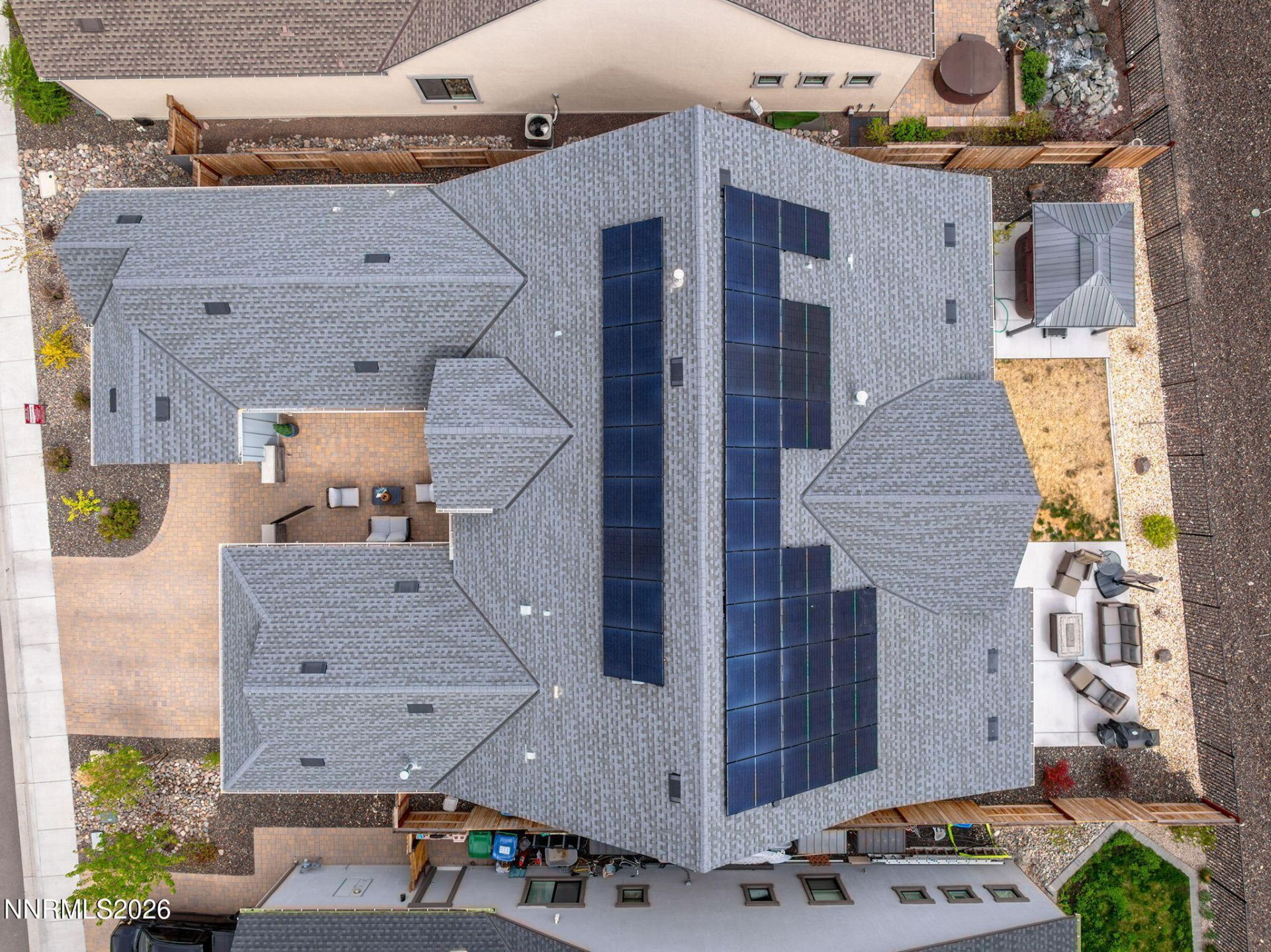 Welcome to a wonderful home located in the highly sought-after gated Ridgeline community of Carmella Ranch Estates. This well-maintained single-level home boasts three bedrooms, 2.5 baths, a 3-car garage, and 2,679 square feet. Enter through the gated paver courtyard into a spacious great room with high ceilings and abundant natural light. The upgraded fireplace with a hearth is the perfect spot for a cozy gathering. The gourmet kitchen is a chef's dream, boasting an upgraded, extended island with extra cabinets for storage, a Stainless steel double oven, fridge, and gas cook-top. The large sliders lead to a fully landscaped yard with a large patio, a hot tub, and a gazebo. It makes for a wonderful place to relax or entertain. The generously sized primary suite features a large walk-in closet, double sink vanity, and a luxurious walk-in shower with upgraded shower doors. A few special upgraded features worth noting are Solar Panels, which keep their power bill at an average of 50 dollars per month during summer; the panels will be paid off at closing; a Tesla charger; encased windows; and tasteful chandeliers and pendant lights, to name just a few. Ridgeline at Carmella Ranch offers resort-style amenities, including a pool, spa, and gym. This move-in-ready home is conveniently located near schools, parks, walking trails, upscale shopping, and easy freeway access, and is just a short drive to breathtaking Lake Tahoe!