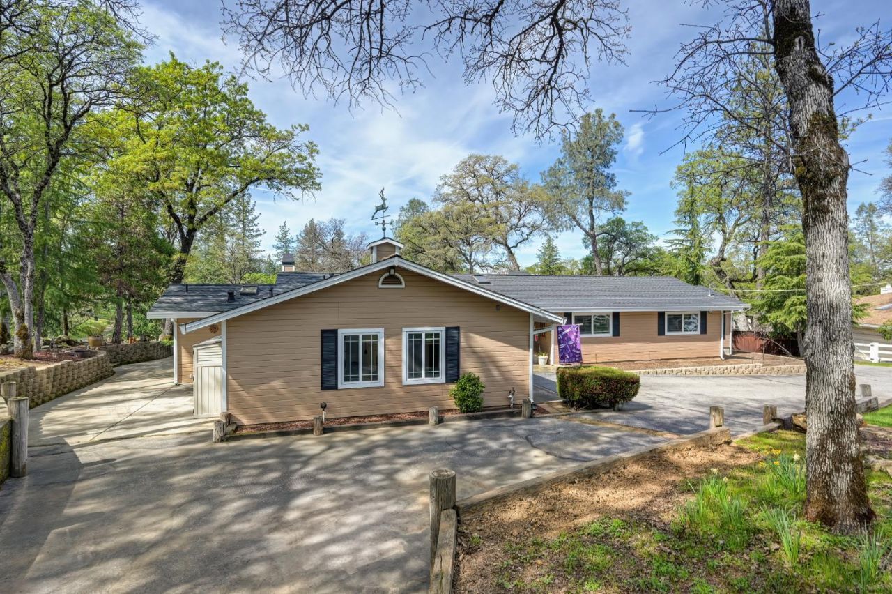 Welcome to this Meadow Vista gem! This beautifully maintained single story home features an open, flowing floor plan designed for comfortable living and effortless entertaining. The kitchen seamlessly connects to the dining area and spacious family room, where a cozy wood-burning fireplace creates a warm and inviting atmosphere. A separate formal living room offer additional space for relaxation or hosting guests. The home includes three well-sized bedrooms and two full bathrooms, thoughtfully updated over the years. Pride of ownership shines throughout with extensive improvements, including remodeled kitchen and bathrooms, dual-pane windows, luxury vinyl plank flooring, updated HVAC system and water heater, paint and more. Step outside to your own private, park-like backyard retreat. Enjoy the beautifully landscaped grounds, complete with a fenced garden area, perfect for gardening enthusiasts. The large patio and covered barbecue area with speakers provide ideal space for outdoor dining and entertaining. Additional features include a deep two-car attached garage and a spacious 12x20 Tuff shed for extra storage or workspace. This is truly a must-see property offering comfort, charm and exceptional outdoor living in desirable Meadow Vista.