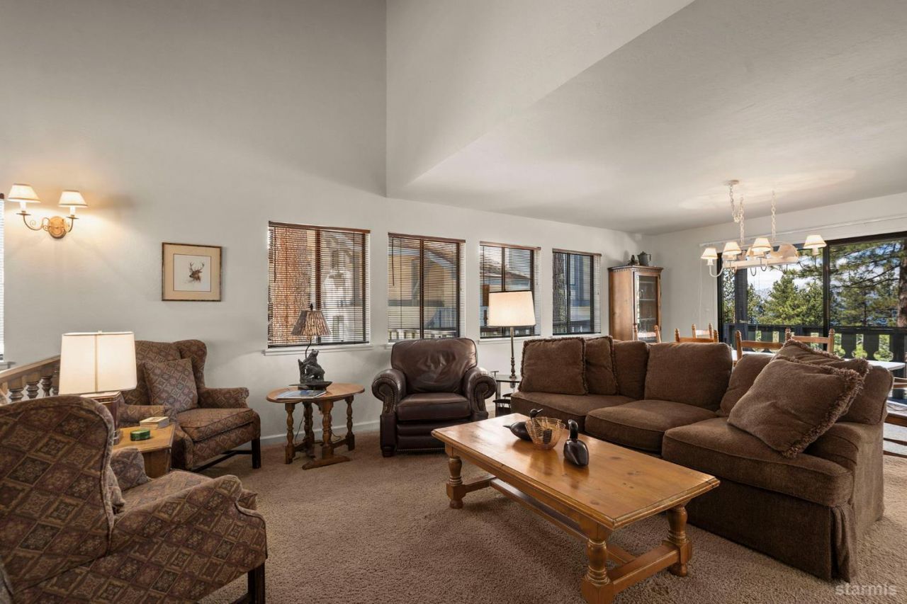 Spacious Mountain Alpine Chalet Located in Tahoe Tyrol on the gentle hill side halfway between Vail's Heavenly Resort World Class Skiing and Tahoe's exciting State Line Entertainment with lots of restaurants and shopping options, and only 4 miles to Nevada Beach. Four bedrooms, three bathrooms, extra-large two car garage, numerous decks and patios, peaceful setting backing to open space, with filtered view of Lake Tahoe.Enter the great room with open beamed, vaulted wood ceilings, and a wood burning fireplace. Step into the kitchen and dining area with peaceful forest setting, and filter lake views. A full bathroom, plus one large bedroom completes this main floor. Upstairs are two more bedrooms, a full bath with sauna, and two more cozy patios.Kitchen has beautifully upgraded cabinets and Corian tops. All baths have Corian tops and upgraded fixtures. Oversized two car garage. Guest Quarters behind the garage complete the fourth bedroom and third bathroom. Also enjoy the Tahoe Tyrol pool, spa, and clubhouse, all for a low HOA fee. This is your perfect Tahoe getaway.