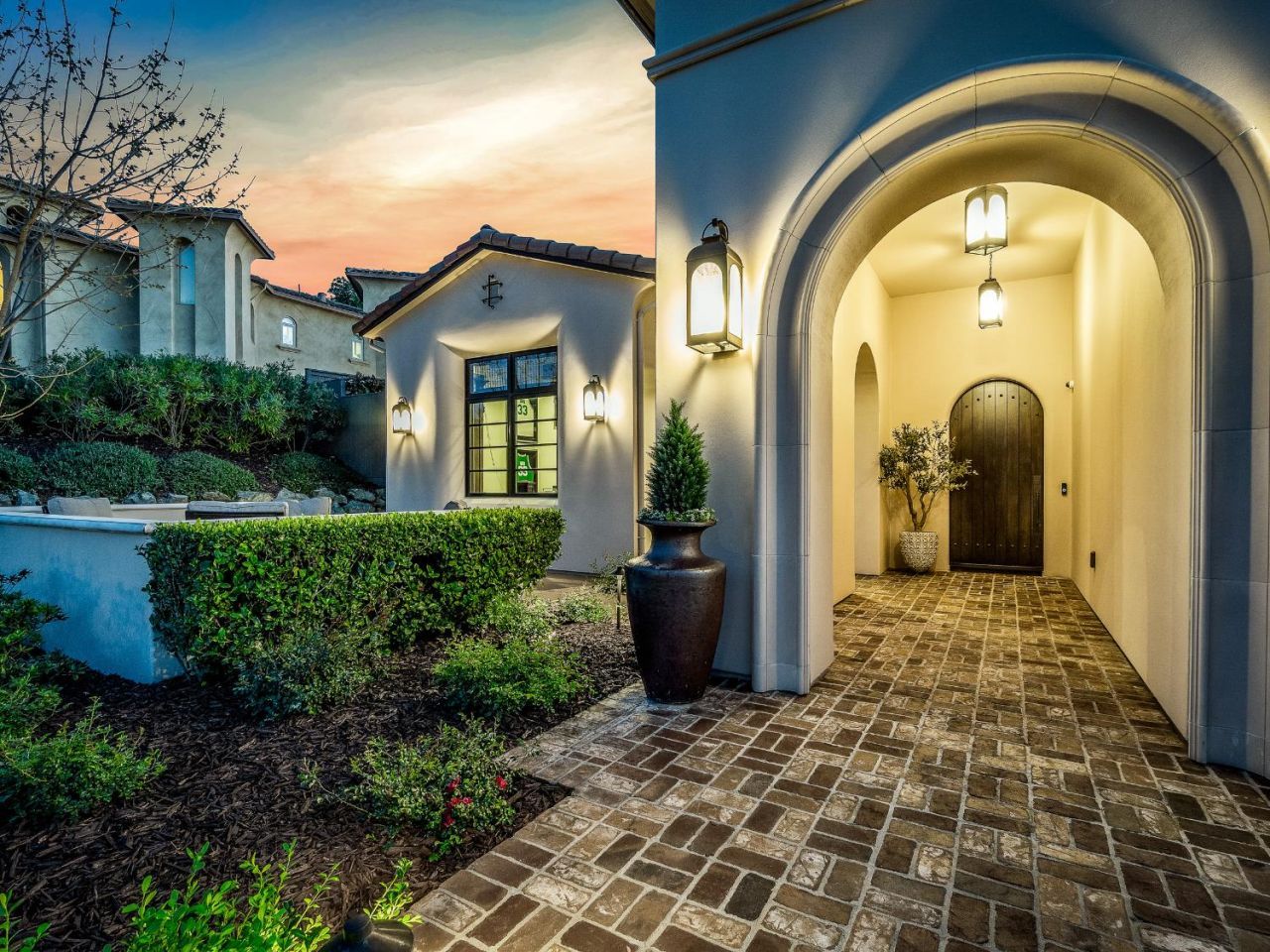 Beautiful and rare SINGLE STORY Spanish Contemporary custom home tucked behind the guarded gates of the prestigious Serrano Golf and Country Club. Built with the highest quality materials and upgraded amenities including tile flooring, expansive quartzite countertops with designer tile backsplash, hand forged iron chandeliers, designer plumbing fixtures, professional Thermador appliance package, solid Alder doors and furniture grade cabinetry and hardware. Enter into this spacious home through front courtyard patio with brick walkway and fountain into the open and bright floor plan with volume beam ceilings into a grand family room with floor to ceiling brick fireplace and outdoor access through expansive sliding glass doors. Relax and enjoy the private spacious primary suite with beam celings and lavish bath with beautiful marble and tile surrounds, his and hers vanities, walk in closets, steam shower and soaking tub. Primary suite connects to library/den with built-in desk and custom window shades. Step outside into the Serrano room with fireplace onto a backyard paradise complete with sparkling pool & spa, grassy areas and spacious patios all surrounded by lavish and manicured landscaping. Media room with surround sound and two bedrooms complete this offering. Solar! Three car garage with epoxy flooring and custom built in cabinets.