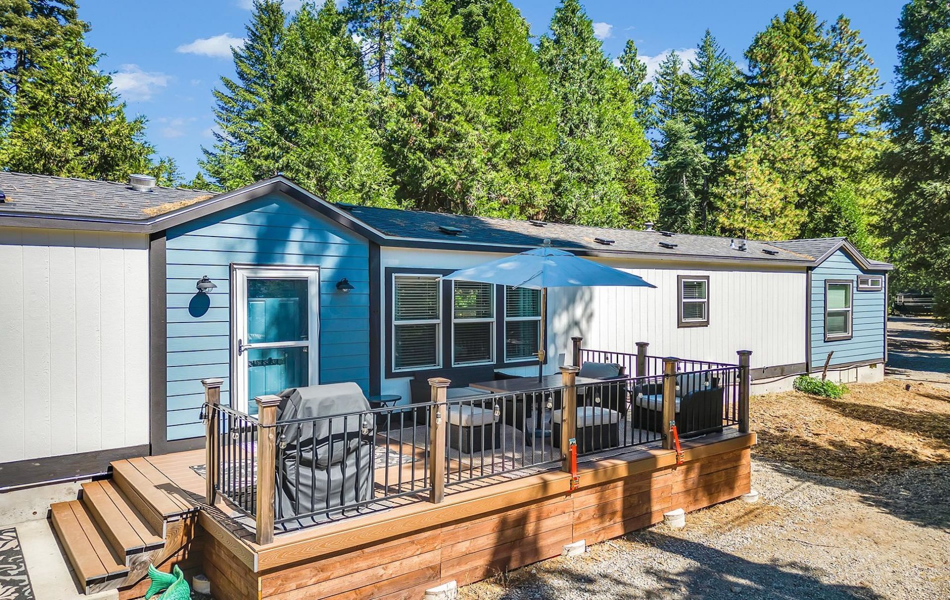 Discover the charm of this cute lakefront manufactured home nestled in the serene cove of Hamilton Branch on Lake Almanor. With a deep water parcel spanning .57 acres, this level property offers easy year-round access and abundant potential for your future plans. Enjoy a leisurely stroll along the walkway to your private dock, perfect for boating and fishing enthusiasts. Just steps away from the optional HOA boat launch, this well-maintained 2-bedroom, 2-bath home, built in 2008 is on a full perimeter foundation, features a new roof installed in 2022 and a stylish composite deck added in 2021. Step inside to find a spacious master bedroom complete with a walk-in closet and a bath featuring a large shower. The open-concept living room and kitchen boast varnished butcher block counters, a tiled backsplash, an inviting eating bar, a large island with seating, newer appliances, and a charming farmhouse sink. The generous guest bedroom and roomy guest bath with a tub/shower combination ensure ample space for family and friends. Additional highlights include a convenient laundry room, laminate and tile flooring throughout, and central propane heating. With plenty of parking for boats and RVs, this property is an ideal retreat or a temporary residence while you design your dream home closer to the water. Furnishings are negotiable, making this an opportunity you won't want to miss!