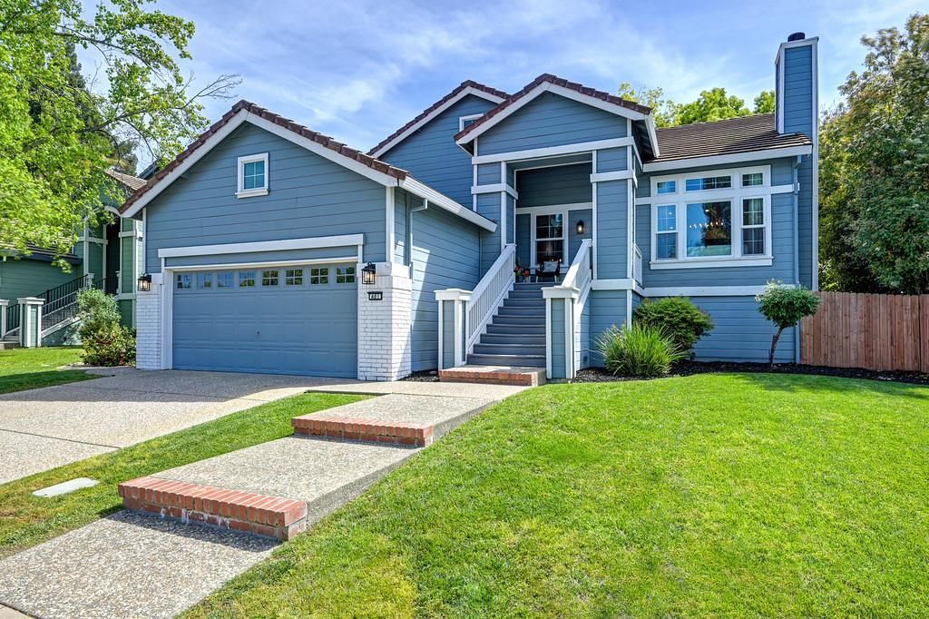 Step into this rare 5-bedroom, 3-bath masterpiece, offering over 3,000 square feet of designer touches in the heart of Folsom's sought-after Cresleigh-Natoma Station. An open-concept design is defined by cathedral ceilings and abundant natural light, highlighting modern fixtures, wood plank flooring, and a cozy fireplace. The expansive kitchen features luxurious Calcutta quartz countertops, a gas range, and convenient pantry, overlooking a private, tree-lined rear yard. The thoughtfully planned layout includes a main-level primary suite with a custom-tiled bathroom and a deep soaking tub. A massive lower-level family/game room with its own fireplace offers endless entertainment possibilities. With recent updates including new windows, a newer HVAC and water heater, this move-in-ready home also offers a low-maintenance, landscaped yard. Enjoy premier Folsom living with quick access to Folsom Lake, Historic Downtown, and the famous Johnny Cash biking/walking trails. No HOA or Mello Roos. Welcome home!