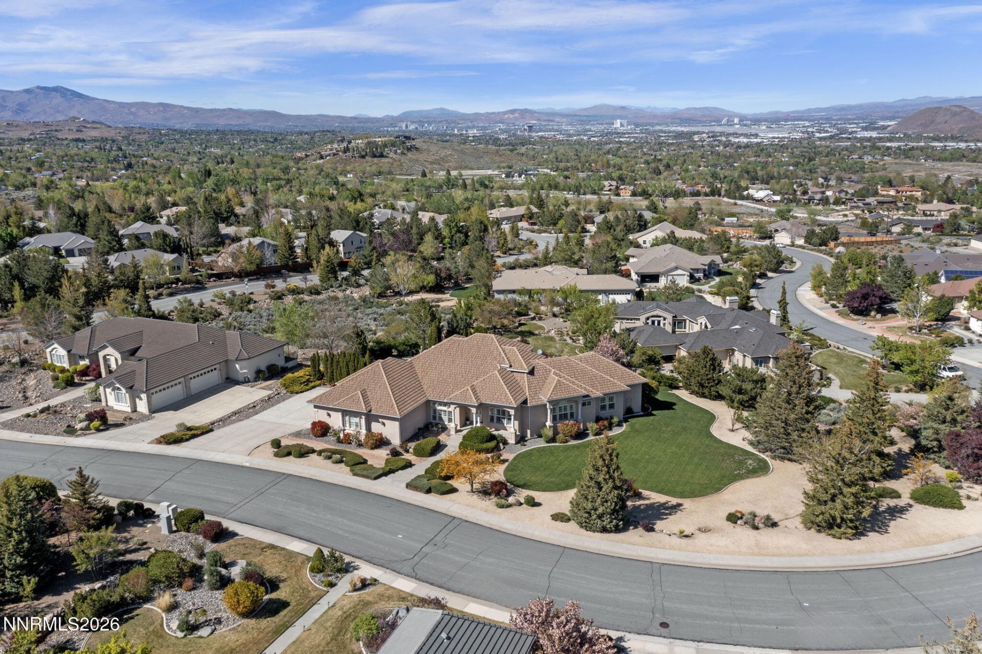 This beautifully designed home offers an ideal floor plan with primarily single-level living, complemented by a spacious upstairs retreat perfect for guests-providing both comfort and privacy. High ceilings throughout create an open, airy ambiance, while the home's thoughtful design helps maintain a naturally comfortable temperature year-round. Enjoy outdoor living at its finest on the covered balcony, an inviting space for morning coffee or evening dining while taking in stunning views of the Reno skyline, beautiful high-desert sunsets, and the soothing sounds of a nearby waterfall. A standout feature of this property is the expansive ~1,400 square foot garage-highly sought after in Southwest Vistas-offering exceptional space for multiple vehicles, storage, hobbies, or a workshop setup. Located in the highly desirable Southwest Vistas community, this home offers a rare blend of tranquility and convenience. Tucked away at the end of Zolezzi Lane, the neighborhood is known for its quiet atmosphere, well-kept surroundings, and friendly neighbors-yet remains just minutes from shopping, the airport, Carson City, and outdoor destinations including Mt. Rose Ski Resort and Lake Tahoe. Outdoor enthusiasts will appreciate easy access to scenic hiking trails such as White's Creek and Thomas Creek, just a short walk from the property. A home that has been truly enjoyed and appreciated by both owners and guests alike-offering comfort, privacy, and a welcoming environment.