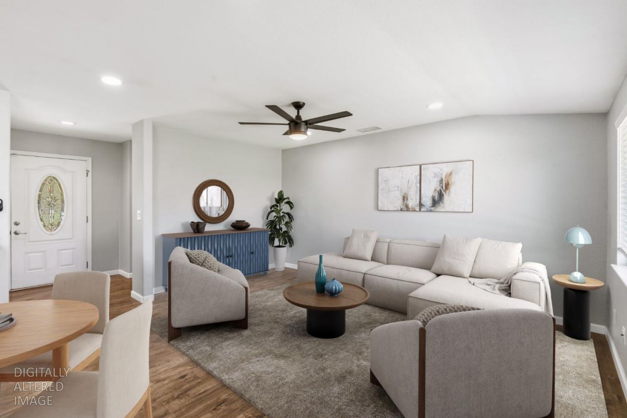 Welcome to this beautifully refreshed single-story home in the heart of Rosevillewhere modern updates meet everyday comfort and effortless living. From the inviting covered front porch to the oversized driveway with space for extra vehicles and an RV, this home makes a warm first impression. Inside, you'll find a bright, open-concept layout enhanced by upgraded laminate plank flooring, newer interior paint, and sleek recessed LED lighting throughout. The stylishly updated kitchen features stainless steel appliances and flows seamlessly into the living and dining spacesperfect for both entertaining and relaxing at home. The spacious primary bedroom offers a comfortable retreat, while the updated bathroom, dual pane windows, central heat and air, and ceiling fans provide year-round comfort and efficiency. An inside laundry room with cabinets adds convenience, and the property truly stands out with abundant powered storageincluding a large shed and separate exterior storage roomideal for hobbies, projects, or extra workspace. Step outside to a generously sized backyard designed for enjoyment, complete with a concrete patio, lawn area and gazebo perfect for gatherings, gardening, or quiet evenings under the stars. With major system upgrades already completedincluding roof, gutters, HVAC, ductwork, insulation, sheetrock, and electrical (all permitted in 2006), plus a newer water heater (2017) and sewer line (2020)this home delivers peace of mind along with style. All of this just minutes from Hwy 80, shopping, dining, and top-rated schools. Move-in ready and packed with valuethis is the one you've been waiting for.