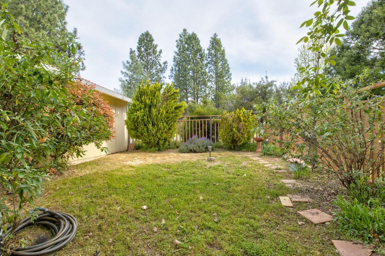 A breathtakingly beautiful property! Over 5 acres of almost fully usable land located in a peaceful rural setting. There's also a private inner courtyard with flowers, raised garden beds, apple and walnut trees, and an old gardening shed. The house features a fantastic wall of windows that connects you with the amazing scenery. The flooring is mostly Spanish tile and Brazilian cherry wood. To keep comfortable, there's a propane stove with log set, electric wall heaters, ceiling fans, wood blinds & shutters, and a wall evaporative cooler. Roof solar keeps the electric bills low. Vaulted wood ceiling in the kitchen and living room. Open kitchen has Jenn-Air gas range, GE refrigerator, dishwasher, and colorful tile counters; separate pantry closet. French doors lead from the master bedroom and the kitchen to the sunroom. Two-car garage has work benches, shelving, and a laundry room, with washer and gas dryer included. Tile roof. Storage room below house. Two decks off the living room.