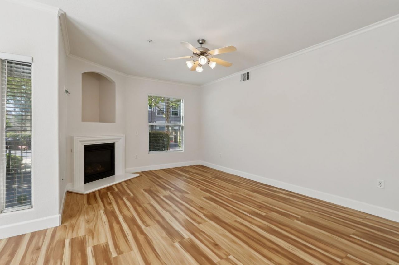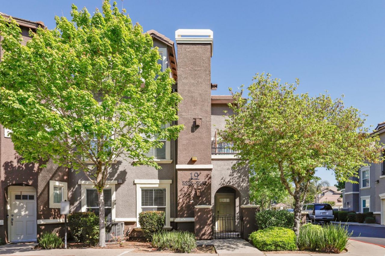 Step into this renovated, ground-floor condo featuring 2 bedrooms and 2 full baths, located in the GATED Jasmine Community with SECURITY PATROL for added peace of mind. The interior boasts fresh paint, modern lighting, a newer thermostat, and LUXURY vinyl plank flooring that connects every space with a clean, cohesive look. The kitchen is anchored by solid granite countertops, a functional breakfast bar, and classic wooden cabinetry; it comes fully equipped with a spacious pantry, a dedicated breakfast area, and ENERGY STAR stainless steel appliances, including a 5-burner gas range. The adjacent living area feels cozy and bright, centered around a gas-log fireplace and a dining area with a contemporary new light fixture. The primary suite features private access to a covered balcony through a large sliding glass door, while the en-suite bathroom offers a spa-like atmosphere with a marble dual-sink vanity, a soaking tub, and a separate walk-in shower. Both bedrooms are equipped with walk-in closets, and the hallway bathroom showcases high-end finishes, including large-format tile flooring and a modern floating vanity. The hallway also includes a clever built-in desk area, offering a versatile workstation for students or remote professionals, alongside a dedicated indoor laundry room complete with a washer and dryer. Storage is never an issue with the massive 2-car tandem garage, which features professional EPOXY flooring and a separate, private storage room. The HOA includes access to a pool, spa, and fitness center. Perfectly positioned for convenience, you are within easy walking distance of Franklin High, Toby Johnson Middle, and Elk Grove Charter School, and minutes from California Northstate University. With nearby dog parks, sports parks, and nature trails, this home offers the ultimate Elk Grove lifestyle for homeowners and investors alike.