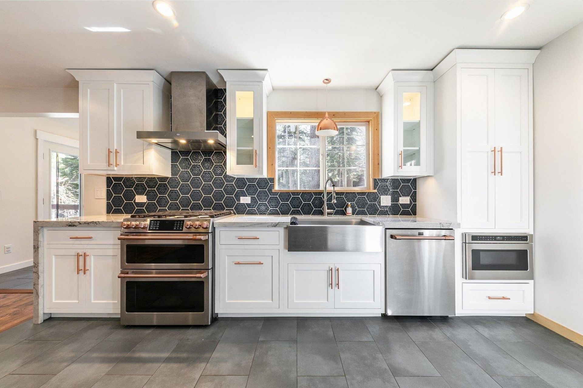 Tucked just 100 steps from scenic trails winding through Sugar Pine Point State Park, this rare single-story retreat offers the perfect blend of comfort, style, and Tahoe lifestyle in the heart of Tahoma. Designed with mountain living in mind, the welcoming front vestibule provides a thoughtful transition space?complete with room for a bench, gear storage, and radiant heated floors underfoot. Inside, the home opens to a beautifully appointed kitchen that will delight any chef, featuring top-of-the-line Caf Appliances, custom white cabinetry, and striking stainless steel finishes accented by warm copper pulls. A gas range, apron-front sink, and expansive Brazilian Quartzite countertops create both function and elegance, while a dedicated beverage station with under-cabinet wine and beverage refrigeration?flanked by tall pantry storage?adds a touch of luxury. A cleverly concealed laundry area with stackable washer and dryer sits just behind a barn-style door, ideal for managing snowy gear after a day outdoors. Two spacious bedrooms are privately positioned to face the backyard, each offering direct outdoor access through glass doors?perfect for enjoying the fresh alpine air. The outdoor space is designed for ease and enjoyment, with a pocket lawn, low-maintenance perennials, and a storage shed creating a serene, private setting. As part of the Tahoe Cedars community, homeowners have the option to join the HOA, which includes access to a private pier on Lake Tahoe and the opportunity to rent seasonal boat buoys during the summer months. With nearby parks, local dining, two marinas, and Homewood Mountain Resort all within 15 minutes, this property offers an exceptional opportunity to enjoy the very best of Tahoe living year-round.