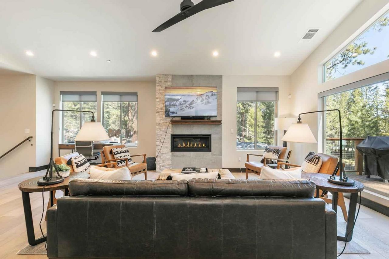 New co-ownership opportunity: Own one-eighth of this professionally managed, turnkey home by Pacaso. With Cove East Beach and the Truckee River nearby, this newly built mountain contemporary home offers convenient access to outdoor recreation in South Lake Tahoe. The private, wooded backyard borders the Tahoe Keys area. The spacious great room features vaulted ceilings, brushed white oak flooring, a modern gas fireplace, and expansive windows showcasing views of the surrounding trees. Sliding doors lead to an upper deck with filtered mountain views. The kitchen is designed for both function and style, with a blend of textured granite and quartz countertops, alder cabinetry, a waterfall island, and stainless steel appliances, including a commercial-style gas range. The generous en suite bedroom includes two closets and a spa-inspired bathroom with a dual-sink vanity, custom tile shower, and freestanding soaking tub. The lower level includes additional bedrooms, bathrooms, a family room, and direct access to the backyard. Located just minutes from the lake, dining, and local amenities. The home is offered fully furnished and professionally designed.
