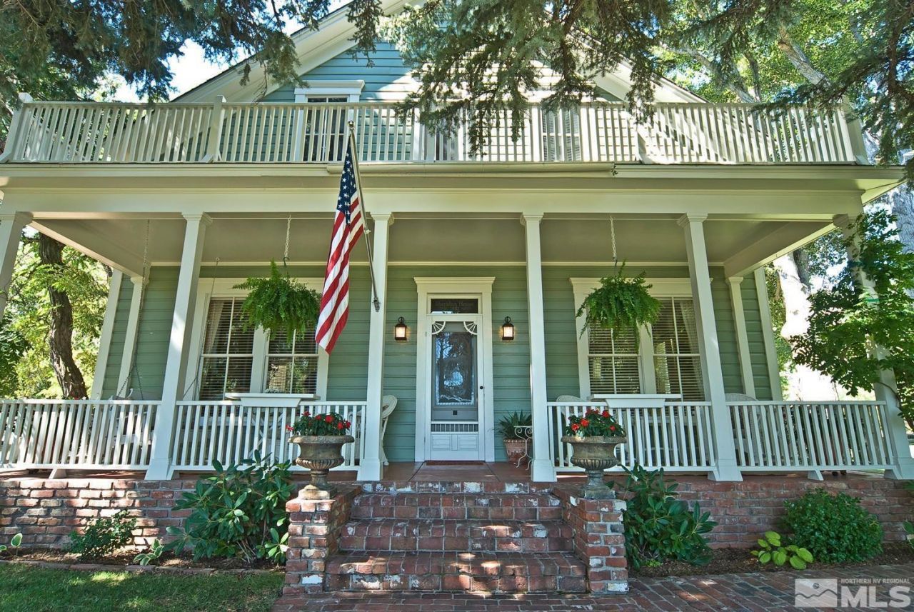 Experience a piece of history in this captivating home where timeless craftsmanship meets modern comfort. Built in 1861 & located on the Emigrant Trail, the Sheridan House was a boarding house & part of a small village that included a blacksmith shop, a store and two saloons. This extraordinary home offers 2845 sq ft with 4 bedrooms and 2 bathrooms, plus a 328 sq ft guest house with 1 bed/1 bath. Also includes a 500 sq ft garage, 500 sq ft workshop & an 800 sq ft Grist Mill. The park like setting features, a private sanctuary of old growth trees, peaceful creek, pond and sprawling lawns. Amidst the natural beauty, enjoy gatherings around the rustic rock BBQ w/commercial 36 grill while taking in the beautiful mountain and valley views. The kitchen blends vintage inspired details seamlessly with modern amenities such as a Wolf 48 LP gas cooktop, Sub-Zero refrigerator. Formal dining room adorned with vintage style wallpaper & chandelier. Cozy living room has a fireplace and opens into a spacious family room. The rustic office/library exudes warmth & character. Wet bar with wine fridge. Four spacious bedrooms upstairs and a luxurious vintage style bathroom with heated floors. 240' high producing domestic well and priority surface water rights included. Gated and private end of the road location. All of this plus a historical property tax exemption! Own a piece of history with this extraordinary home and property. Centrally located to Lake Tahoe, Carson Valley, Nevada and numerous golf courses and ski resorts. Short drive to the Reno-Tahoe International Airport.