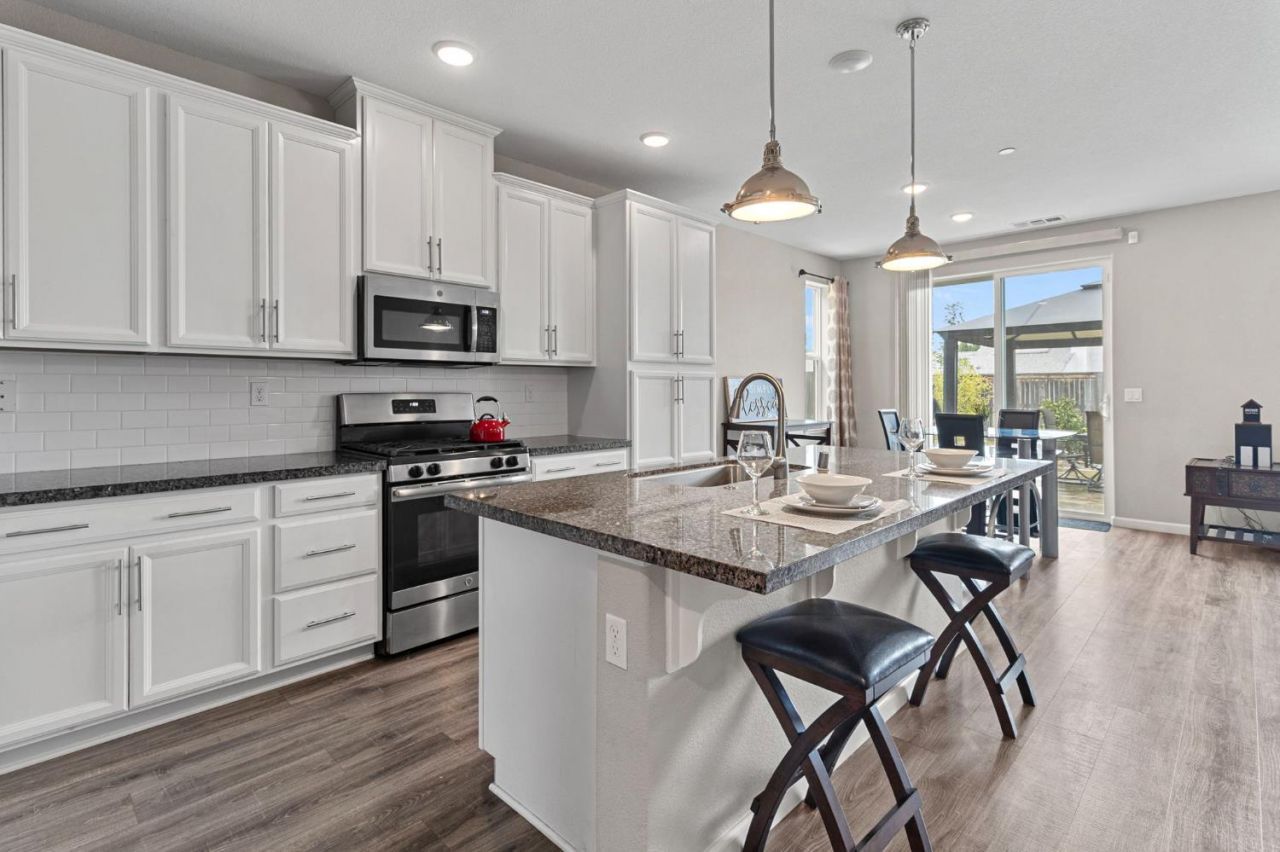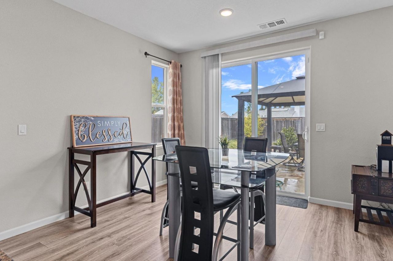 Welcome to 8695 Esperia Way, Sacramento, a beautifully maintained home in the desirable Caselman Ranch community near Elk Grove with NO HOA. Built in 2017, this two story residence offers 4 bedrooms, 3.5 bathrooms, a versatile loft, and approximately 2,190 sq. ft. of well designed living space. The open concept floor plan creates a natural flow between the main living areas, making the home ideal for both daily living and entertaining. The kitchen features white cabinetry, granite countertops, a white tile backsplash, stainless steel appliances, and a center island with sink and pendant lighting, all opening to the spacious great room filled with natural light. Wood look laminate flooring, recessed lighting, and ceiling fans add warmth and comfort throughout the home. A downstairs junior suite with a full bathroom provides a flexible space for guests or extended family. Upstairs, the loft offers additional room for a home office, media area, or play space. The backyard offers a gazebo and outdoor space perfect for relaxing, gardening, or hosting gatherings. A long driveway and two car garage provide convenient parking and storage. Located near Jimmie R. Yee Park, shopping, restaurants, entertainment, and Highway 99, and within the highly regarded Elk Grove Unified School District, this home offers both convenience and lifestyle. Come see it today!