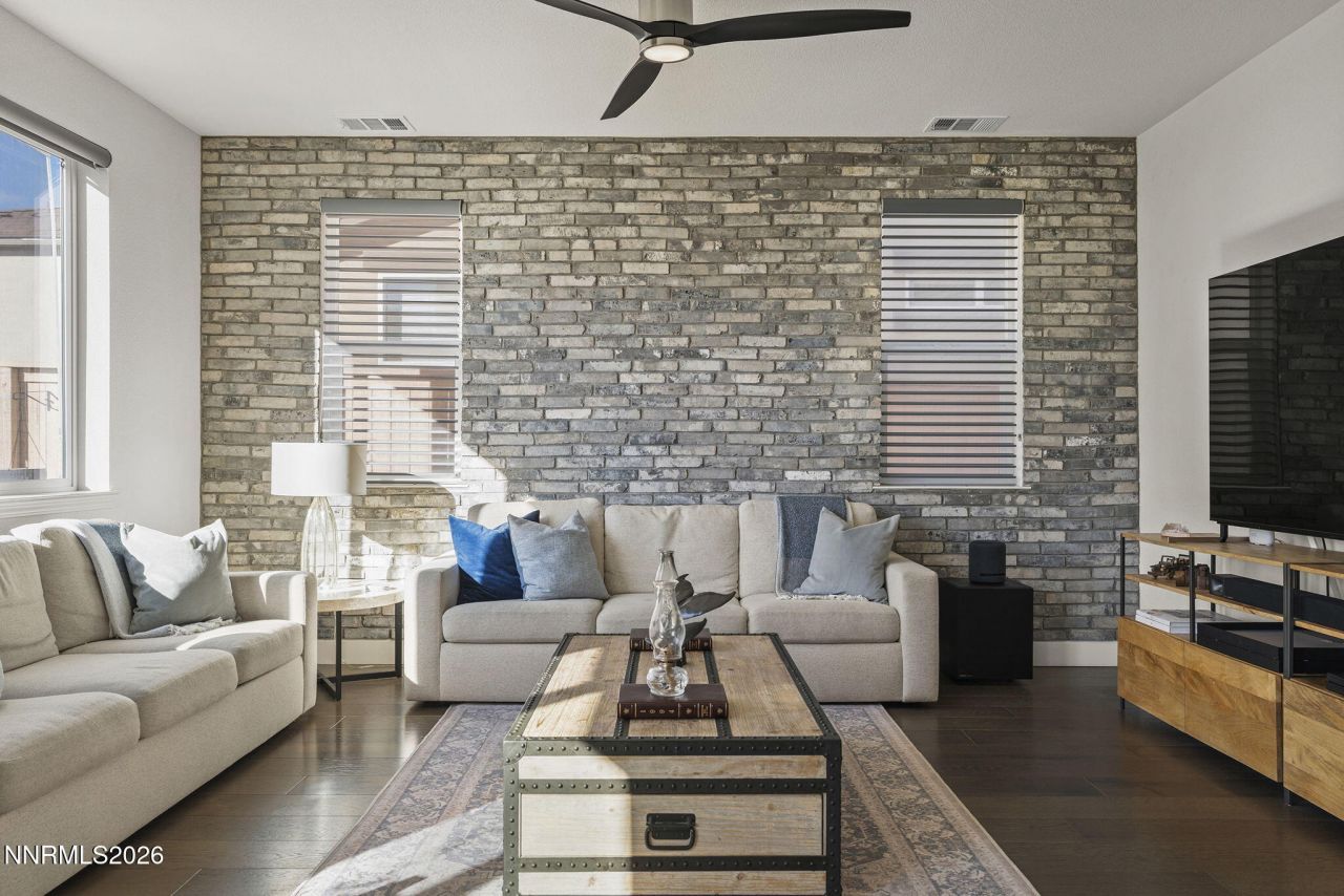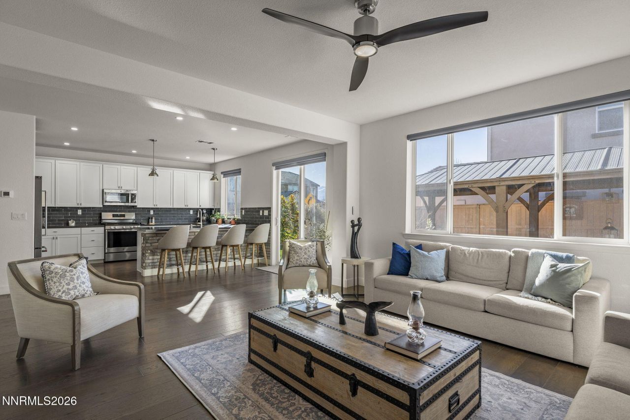 Panoramic Views of Mount Rose in a highly upgraded home where no expense was spared and every detail was thoughtfully designed; it is a lifestyle. Imagine waking up each morning to breathtaking views of Mount Rose, sunlight streaming through motorized blinds, and the rich warmth of engineered wood floors beneath your feet. Every corner of this home has been meticulously upgraded, from fully finished designer bathrooms to a kitchen that dazzles with elegant cabinetry, designer backsplashes, and seamless functionality. Every detail exudes comfort, sophistication, and modern luxury. Entertaining becomes effortless with an open concept layout that flows naturally from the kitchen to the living spaces, creating an inviting atmosphere for lively gatherings or quiet evenings at home. The primary retreat offers a spa inspired escape, while thoughtful upgrades including garage shelving, included appliances, and refined finishes make everyday living seamless and organized. Step outside into a backyard designed to impress. An incredible pergola creates the perfect setting for outdoor dining and relaxing, while a stunning water feature adds tranquility and ambiance. Surrounded by planter boxes and complemented by a beautiful brick veneer exterior, the outdoor space feels like a private retreat, all perfectly framed by sweeping mountain views. Living in Damonte Ranch means embracing everything Reno has to offer while remaining connected to top rated schools, parks, shopping, dining, and quick access to downtown or Lake Tahoe adventures. Picture yourself enjoying sunsets over Mount Rose beneath the pergola, hosting unforgettable gatherings, or simply soaking in the peaceful sound of the water feature after a long day. This is a home designed for those who want it all, where luxury, upgrades, views, and lifestyle come together to create something truly special.