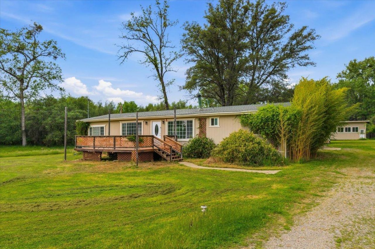 Five flat acres and room for everyone, all under $400K. Whether you're dreaming of multi-generational living, extra space for guests, animals, or flexible rental potential, this property delivers. The beautifully updated 3-bed/2-bath manufactured home features new flooring, new cabinets, fresh paint, stunning natural light, built-in central vacuum, and mini-split systems throughout. Fully electric and perfectly set up for future solar. A converted garage apartment with two bedrooms offers additional living flexibility. Outside, five genuinely flat and usable acres provide privacy and room for gardens, animals, and expansion. The remaining garage space serves as a workshop with plenty of storage, and a well-maintained storage shed rounds out the property. This is the kind of place you buy and never want to leave, where Bullard's Bar Reservoir is twelve minutes away, Lake Francis and Collins Lake are five minutes down the road, and nature is just part of your everyday. Appointment only.
